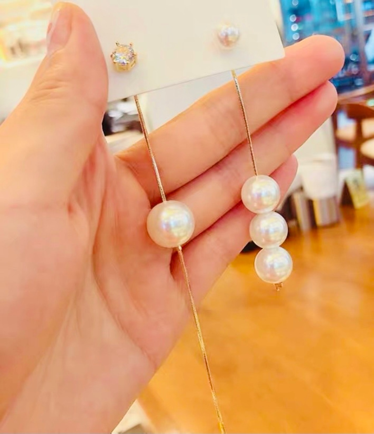 サイズ: パール3連のサイド8cm・チェーンサイド12.5cm